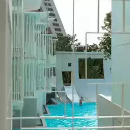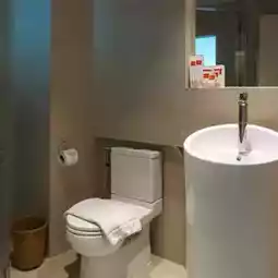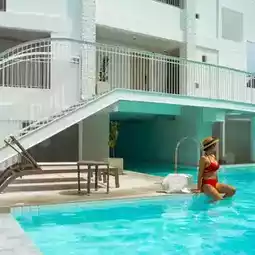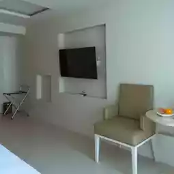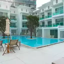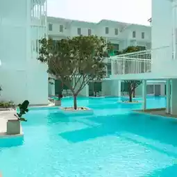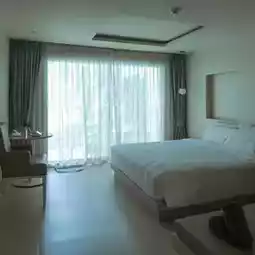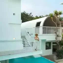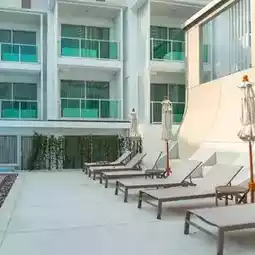💙Minimalist Pattaya hotel, mini-hearted, emphasizing blue and white tones.