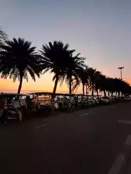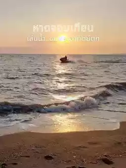 After saying goodbye to the monkeys, we drove to Jomtien Beach. We checked in at the hotel, put our things away, and went for a walk along the beach to watch the sunset. Jomtien Beach has now been expanded to be much wider. People come here to have picnics in the evening. Families, parents and children come to play in the water, tourists come to play jet skis, banana boats, etc. The atmosphere is fun and lively.