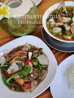 Finally, when you come to the sea, you have to eat seafood. Before going home this time, we stopped by Krua Jae Tum restaurant. My mom and dad said in unison that it was delicious. Even though the menu we ordered was general food, the food was cooked to a strong flavor. We really liked it.