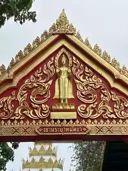 "Wat Khao Phra Bat" Within the temple grounds, there are many sacred places to worship. The Phra Phutthabat Pavilion is the first thing you can see from the entrance because it is located in the center of Wat Khao Phra Bat. Inside is where the Buddha's footprint is enshrined. People come to worship and pray for blessings.