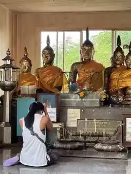 The walls are painted with stories about the life of the Buddha and there are also 3 Buddha statues enshrined near the Buddha's footprint. Wat Khao Phra Bat Pattaya is another place with a view of South Pattaya and Jomtien Beach. Most importantly, the view is very beautiful. 😊