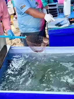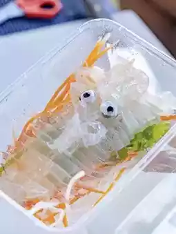And there's also "Squid Shot", a menu that uses fresh squid, dipping the squid head into a glass filled with seafood sauce. Sometimes called a shot glass. Now when the squid head is dipped into the sauce, the squid will absorb the seafood sauce into itself. This menu is a pass.
