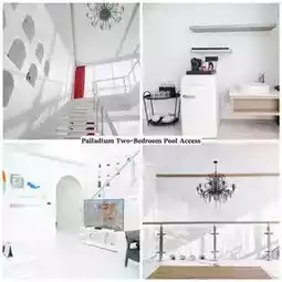 We stayed in the 𝐏𝐚𝐥𝐥𝐚𝐝𝐢𝐮𝐦 𝐓𝐰𝐨-𝐁𝐞𝐝𝐫𝐨𝐨𝐦 𝐏𝐨𝐨𝐥 𝐀𝐜𝐜𝐞𝐬𝐬, which is a 145 square meter, 2-bedroom, 2-bathroom villa that can accommodate up to 4 people. The villa has a large living room decorated in white tones that contrast with bright colors, making it suitable for families or groups of friends. The room is located next to the swimming pool, so you can jump into the cool water right after opening the door.