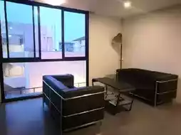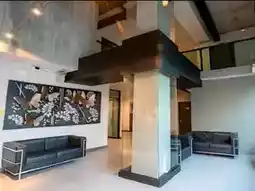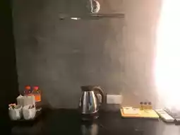 ☑The room is decorated in a bare concrete style.