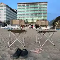 You can bring your own chair to relax. Or if you didn't bring your own chair, there will be people walking around asking if you want a chair. The rental fee starts from 100 to 200 baht, depending on the size and style. If it's a mat, it's 100 baht.