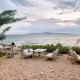 A cafe and restaurant by the sea in Pattaya, decorated in a Balinese style, with many beautiful photo spots. I recommend coming in the evening to watch the sunset, it's the best! ❤️You can also bring your dog or cat with you. 🐶🐱