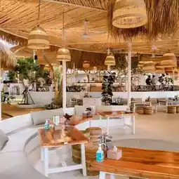 The atmosphere of the shop is very good, it feels good, it has a Bali beach club feel. The shop is spacious, there are many seating areas to choose from, both by the sea, air-conditioned room, sofa, lawn.