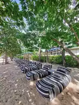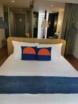 It's so relaxing to sit and listen to music. Listening to music while sipping coffee is so great. After eating and drinking coffee, we checked in at Navana Hotel. It's a very luxurious 5-star hotel right by the beach and has a very beautiful swimming pool. The room is clean and the bed is very soft.