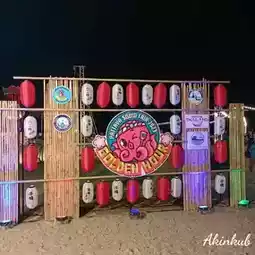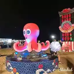 🐋Squid and seafood festival on the beach with a view of the sea.
