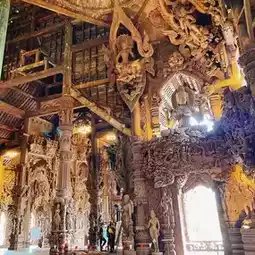 Known for its exquisite wood carving architecture The Temple of Truth is a fusion of Thai, Indian, Chinese, and Cambodian styles