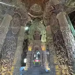 The temple has no nails used and is made entirely of wood even the steps of the stairs are elaborately carved