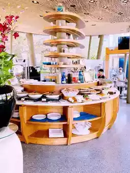 Central swimming pool It is an infinity pool that offers a view of the garden and the beautiful sea. There is also a children's pool with both small and big children's zones. You can come and play in the water all day. Meen Restaurant is the main restaurant for a buffet breakfast, which is located by the pool with a comfortable atmosphere. In addition, there are Thai and Western food available to order.