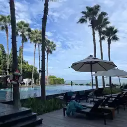 After breakfast, we took pictures near the hotel pool📸📸👍🏻