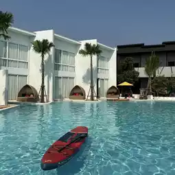 The room is 100 square meters, the bed is very big, the swimming pool is inside the room, and breakfast is at the tram next to the lobby. If your villa is far away, you can call a buggy to pick you up. The hotel has its own shuttle bus to central and terminal 21.