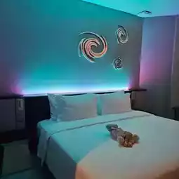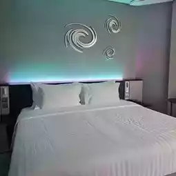 😘 Lovely room with a luxurious atmosphere, I must say that from the moment I opened the door, it was extraordinary. The first thing I saw clearly was the large bed, about 6 feet wide. The amount of space to put things was enough for someone staying for 2-3 nights. The atmosphere when I walked in made me want to sleep right away. The bed was very soft. I took pictures during both the day and night. What I really liked about the night view was that the light was like a green aura and you could see the entire Pattaya atmosphere from the window. We were on the 20th floor, but I must say that the higher you go, the more beautiful it is. I would like you to try staying here.