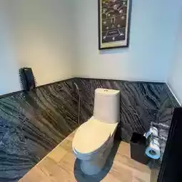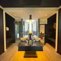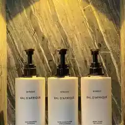 The bathroom is divided into sections. There is a wardrobe, a bag rack, a His and Her sink area, a shower area (with rain shower), a bathtub area, a fairly wide basin, a toilet area (with a bidet). Amenities Byredo bal d'afrique
