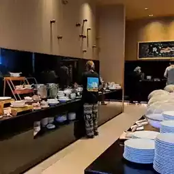 - Dinner has an international seafood buffet, shrimp, shellfish, crab, fish, so much.