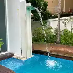 Swimming pool 🏊 divided into 2 pools, the pool is about 1.5 meters deep and the children's pool is about 0.8 meters deep. From a high angle, you can see the swimming pool designed to look like a fish.