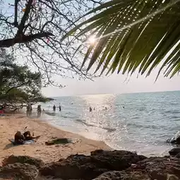 Because in addition to the beautiful sea water and clean beach, there is also a giant rock as a landmark to check in as well. Another place that you can't miss is the small fishing market that has only fresh seafood from fishermen who go out to catch it themselves. After catching, they will come to park here and take it out of the nets fresh (Here they use wide-meshed nets to catch large animals).