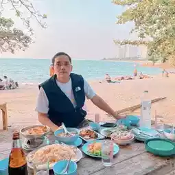 Another place to visit in Pattaya that just by saying the name makes you excited. Secret Beach Pattaya, Naklua 18 or "Wong Amat Beach" is still very popular. It is a place to buy fresh seafood at a cheap price with a lot to choose from. There is also sweet sashimi for you to eat. There is also squid shot. Dip it with soy sauce, wasabi or seafood sauce. It's awesome! Today, I will take you to eat fresh seafood by the sea at Secret Beach. Let me tell you, the atmosphere is so good that it has created a new place to visit by the sea in Pattaya.