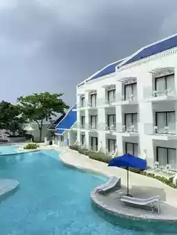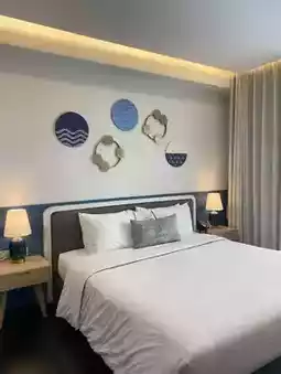 A beautiful accommodation decorated in a clean blue and white tone that is easy on the eyes. No matter which angle you take a photo, it will be beautiful. Selfie girls will definitely love it. The room has complete facilities. The room is very clean. You can take photos from the balcony and feel like you are sitting and looking at the sea from the room. Another highlight is the seaside swimming pool. I must say that it is a must-see for social media users.