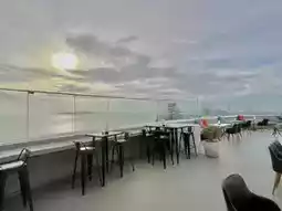 We stayed in a Family Suite on the 27th floor. When you enter the room, you can't see the sea view. When you go outside, the balcony is very windy. You can see the view of Jomtien Beach. There are chairs to sit and sip coffee and enjoy the sea breeze.