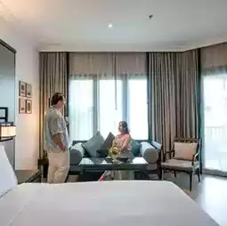 The room that Tong and Jack stayed in was a 💙 Junior Suite with a sea view 🌊 with a very wide balcony, overlooking both the swimming pool and the sea. The room is very spacious, with complete facilities. There is a bathtub for you to soak in. The bathroom and toilet, including the sink, are clearly separated. The bed is soft, the pillows are very comfortable. It is considered a complete relaxation. Comes with the right to enter the club. I must say that you must enter because in addition to the beautiful view inside the club, we also check in to the beautiful, cool sea view and receive Afternoon Tea to eat before entering the room in a chill way.