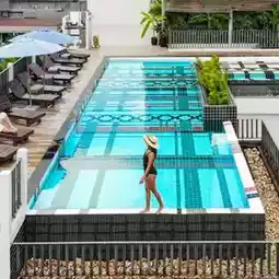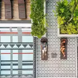 🌿 On the top, there is a Roof Top where you can order drinks and food here to sit and relax. And the swimming pool is in the shape of an L, a cool plaid pattern. You can see the sea from here. 🍳 As for breakfast, you can eat until 4 pm. It's amazing and their food tastes good. It also looks good. We can go down to eat at the cafe below. I really want everyone to try it and drag your boyfriend along.
