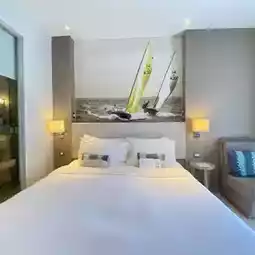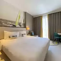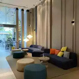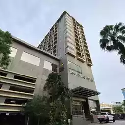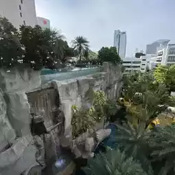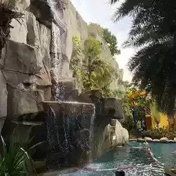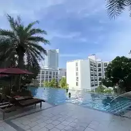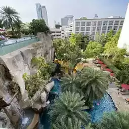The hotel entrance can be accessed from two sides, both from the beach road and the one-way road at the back. The beach walkway is wide and beautiful and newly renovated. There are three hotels in the hotel area. There is a 7-11 store in the hotel area. There are two swimming pools. The children's water park is downstairs next to the lobby. Another pool is on the same floor as the gym and breakfast room. The rooms are simply decorated with balconies. The housekeepers don't clean the rooms very well. The floors are still sticky and there is hair scattered all over the room. The hotel focuses on families. It is quite busy, especially on holidays.