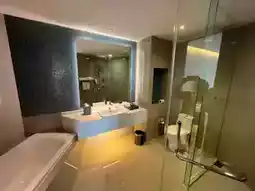 Let's cut to the room. This time, you booked a One Bedroom Suite. The room is sooooo big! You can run around and have fun. What's better than a big room is the bathroom, which is also big. Everything is really convenient.