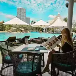 Wan arrived at the hotel. Wan chose to have lunch at La Costa restaurant by the pool. Eating by the pool is another way to chill.