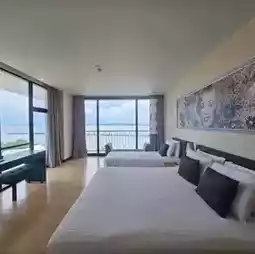 The design of the hotel is very chic and classic. The interior is decorated in a modern style that fits perfectly. There are also rooms with a sea view. The room that Wan stayed in was a Superior Sea View room. The room was very spacious. There was a bathtub. It was a corner room. There was a balcony with a sea view from the room.