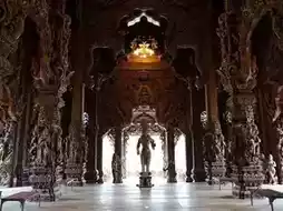 The Sanctuary of Truth is the largest wooden castle in Thailand. The castle was built using ancient construction techniques, namely the dowel-joining, mortise-and-tenon method, without using a single nail. This method is a preserved form of construction. The concept of this architecture is linked to the religious philosophy of impermanence or impermanence, and the four magnificent wings were built to symbolize religions in Thailand, Cambodia, China, and India.