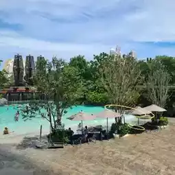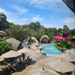 🏞 There is a swimming pool with large playground equipment. There are staff to take care of every point all the time.