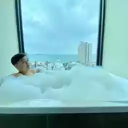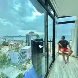This time, I booked a Junior Corner Ocean View room. The corner room has a magnificent view. For those who like taking pictures, I recommend staying in this room. It is worth the price. Although the TV stand looks a bit awkward, the overall room is okay. Especially the view is very good. The room's glass is very large. You can see the sea from every angle. Especially the glass corner next to the bed. There is a sofa corner that is a highlight. It is a cool photo corner. You can see a 180-degree view of Pattaya. Lie down in the Jacuzzi and watch the sea view.