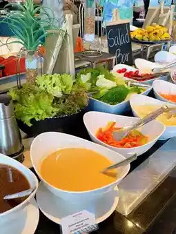 🍽️ The restaurant is on the 5th floor. For breakfast, there are many menus to choose from, both Thai and international. Or you can order food to eat in the room, there are both delicious and healthy menus for health lovers. 🥗🥘