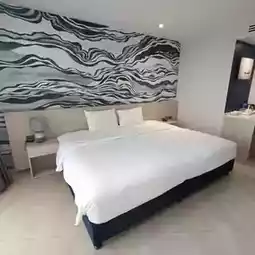 Brighton Grand Hotel Pattaya, the hotel is quite spacious, has a lot of space, and quite a lot of parking. The view from the room is quite good because it is on the 26th floor. The interior of the room is beautifully decorated and quite spacious. It is considered excellent. The view of Pattaya is far away. The bed and blanket are very good, very comfortable to sleep in. The water pressure is strong, the bathroom is large. The breakfast is okay. The hotel has several conference rooms, a swimming pool on the 10th floor with a good view, a bar and a fitness center. The atmosphere is good. #Pattaya Hotel