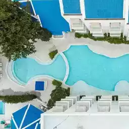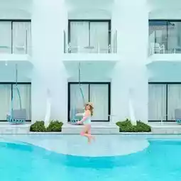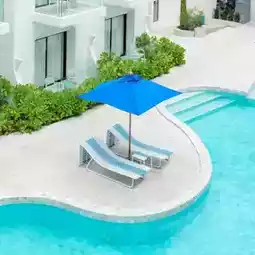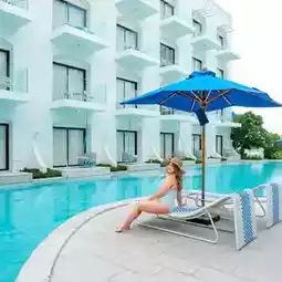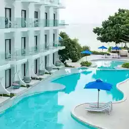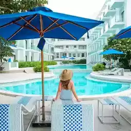 #Recommended accommodation 💙 Kram Pattaya - Kram Pattaya, a beachfront hotel in Pattaya, feels like Santorini, designed in blue-white tones, with a large swimming pool in the middle. Every angle of the pool is beautiful. Content creators will definitely love this. There is also a small pool by the sea where you can soak in the water and watch the sunset. The vibe is so good!