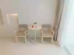 💙Minimalist Pattaya hotel, mini-hearted, emphasizing blue and white tones.
