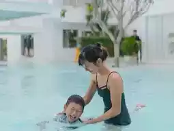 The room we stayed in was a Family pool access room that you can open the door to get into the pool. Inside the room, there is a large bed and a bunk bed for the kids. The bathroom has separate wet and dry zones. In the evening, you can walk from the accommodation to sit and relax by the sea at Wong Amat Beach, not far from the accommodation.