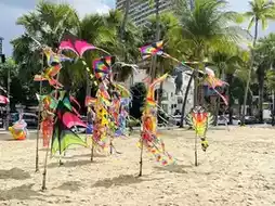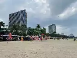 They come to sell kites all along the beach. When there are a lot of them together, we think it's very beautiful. It creates a lot of color on the beach. And there's not just one shop. From the beginning of the beach to the middle of the beach, there are colors all the way. It's very exciting. If you bring your kids to visit, they'll probably love it. Even we like it a lot. And you can go in and take pictures with the kites in the shop. If anyone goes to Pattaya during this time, try to stop by and see.