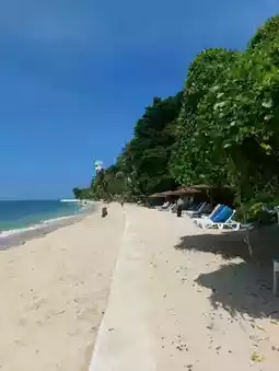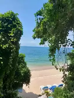 🏖⛱️There are some shady trees along the beach to provide shade from the sun. There are also beach chairs provided by the hotel.