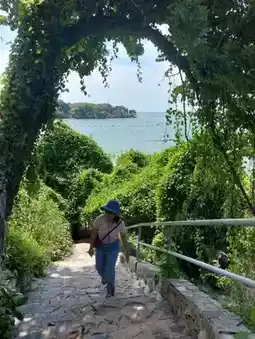 🏖🏖To get off the beach, you have to walk through The Sky Gallery cafe. There is a beach access by a large tree. It is a concrete path that is easy to walk on, but a bit steep. Before entering the beach, there is a pine tree. You can stop and take beautiful pictures. It feels like you have crossed dimensions and found the beach.
