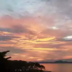 We made an appointment at 5:30 pm that day, fortunately it didn't rain, we took a few photos and sat down, ready to enjoy the sunset🌅, very beautiful, slowly saw the sky turn orange-red, to be able to have dinner with my family in such a beautiful view🍴, really happy!