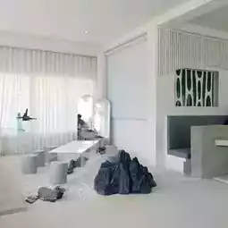 2nd floor of Sea Breeze Hotel, another Korean cafe in Pattaya. With contrasting black and white and white sand throughout the cafe, looking out to the Jomtien Sea view, taking beautiful photos, many angles for selfies