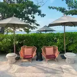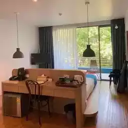 ⛱⛅️ On a vacation, we want to chill out at a hotel near our home. This is a 5-star hotel. Their service starts from the moment we get off the car. The staff will help us carry our stuff and drive us there. Then we take the elevator to check in. There will be a welcome drink of lemon juice, sour and fizzy. After checking in, the staff will take us for a walk and introduce each spot before sending us to the elevator. The room I booked is a Deluxe garden view room, which is the most ordinary room here. There are many seats around the hotel and there is a seating area by the sea. 🌈☺️