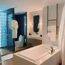 The Deluxe room is perfect for couples because the bathroom and bathtub are open. There will be curtains to cover the bathroom. 🛀🏼