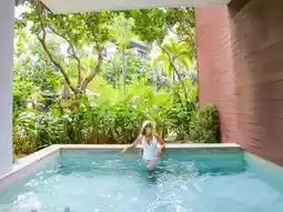 🚪In terms of rooms, this time, I stayed in the Premier Suite Private Pool. The room is very spacious, well-proportioned, with a large living room separate from the bedroom, a bathroom with separate wet and dry zones, a balcony with a garden view, and most importantly, a private swimming pool with a jacuzzi for a relaxing soak. It's a true paradise for relaxation.