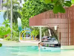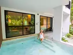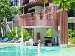 🏝️This trip, Aom would like to take everyone to relax and chill in a very shady accommodation with a spacious area, perfect for a relaxing day. The hotel is located in the Jomtien area, Pattaya, only 5 minutes from Jomtien Beach. Although the accommodation is not by the sea, there is a very large swimming pool to play in. At the children's pool, there is a water spray tunnel and a few cute little slides for children to have fun. There is also a Jacuzzi in the pool for soaking. Sit back and relax, sip a cold drink, so awesome. In addition to the swimming pool, there are also various facilities to provide services, such as: