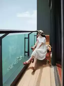 The glass window is directly from the upper floor to the lower floor (estimated to be 4 meters high)